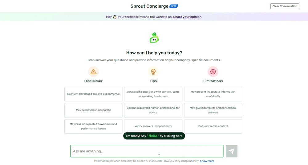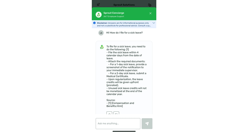 Company Wide Knowledge Base: Get instant access to your company’s policies and product information, whenever you need it.