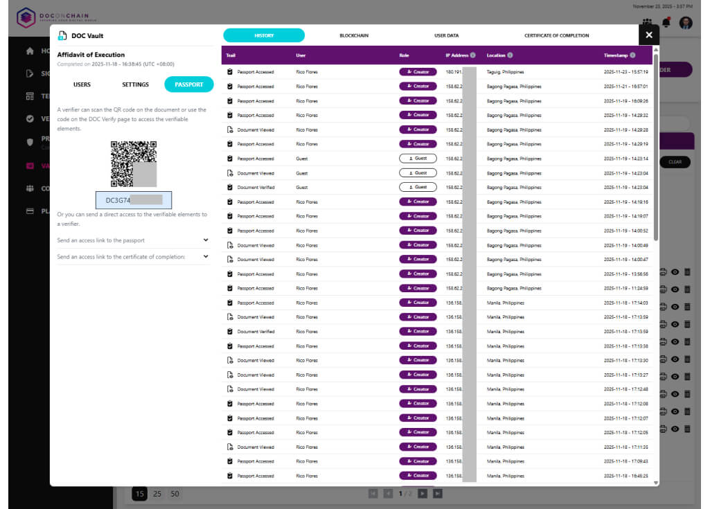 Instant document authentication (Scan, Link, Upload, and Code).