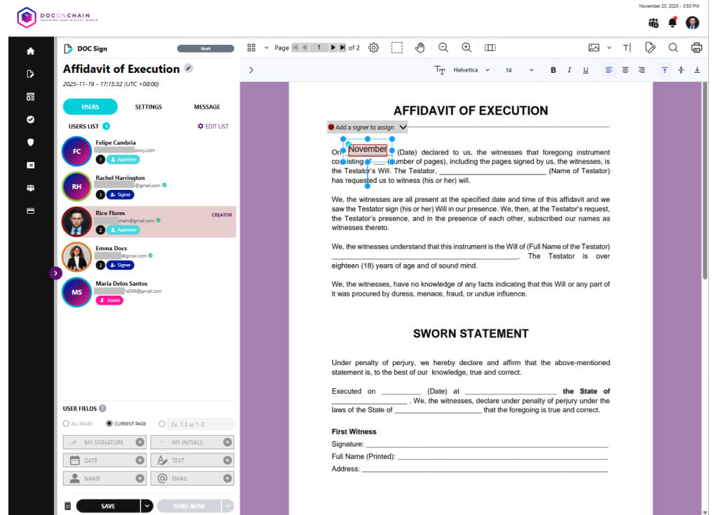 Flexible user roles (Creator, Signer, Approver, Viewer, Issuer, Issuee).