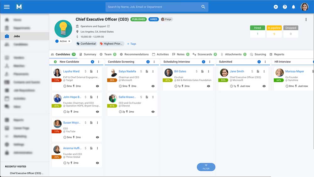 - Automate your entire recruitment process from job posting to candidate management; use algorithms to find the best fit, and know where each candidate is in the hiring process at a glance with an easy to use interface